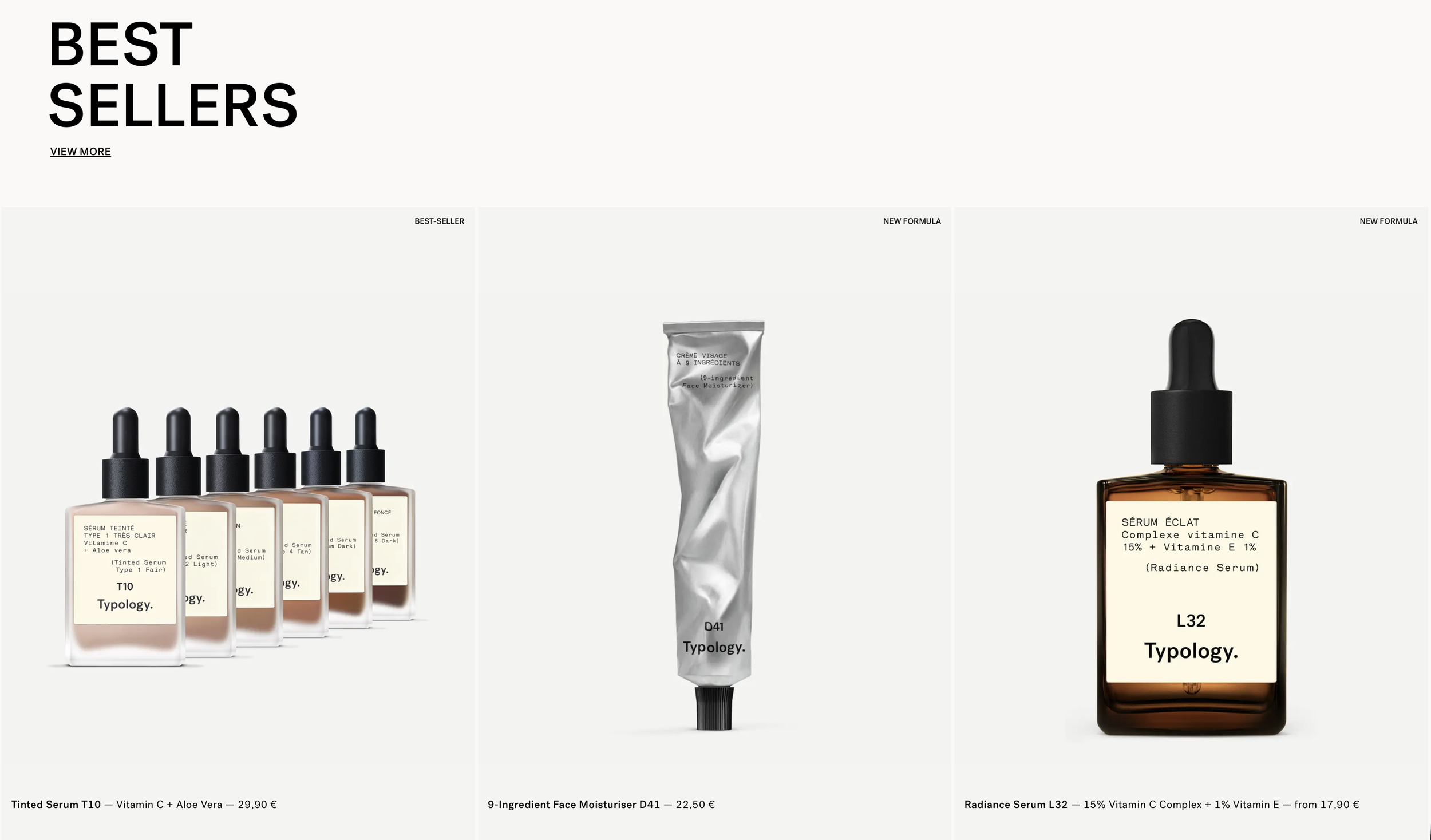 Case StudyTypology disrupted the beauty market with a radical promise: transparency and a maximum of ten ingredients. However, in a digital landscape flooded with "clean beauty" aesthetics, the challenge was to evolve the visual language from "informative and minimal" to "iconic and authoritative." We needed to prove that simplicity isn't just a lack of ingredients – it’s a deliberate design choice.